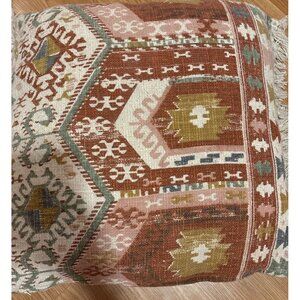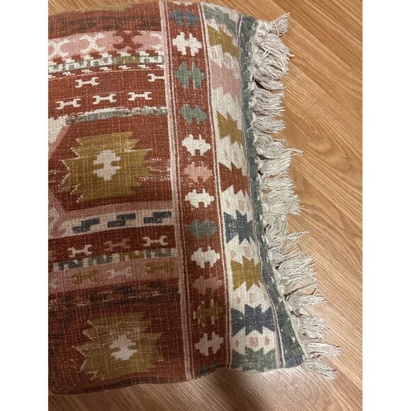 2 Bohemian Kilim Style Throw Pillow With Fringe 22 x 22”Multicolor Cotton