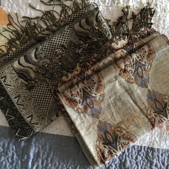 2 Brocade patterned long rectangular scarves