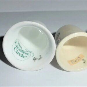 2 CHRISTMAS THIMBLE Creative Circle Santa Clause Bag Toys St. Nick Ceramic