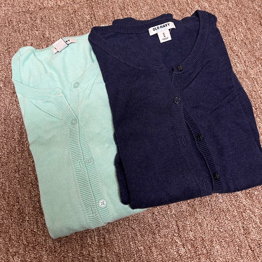 Both the exact same. Great condition just don’t reach for them. See pics for measurements. Colours are navy and mint green.