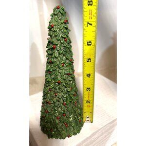 2 Christmas Tree Decor Frosted Satin Art Glass 6" Resin Tree w/ Holly Berries 8"