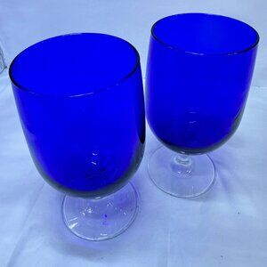 2 Cobalt Blue Glass Water Pedestal Goblets Glasses