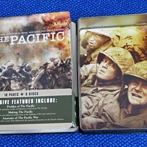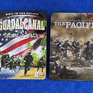 2 DVD Sets in Embossed Tin Cases GUADAL CANAL Island of Death & THE PACIFIC. Both sets are in very good condition.
