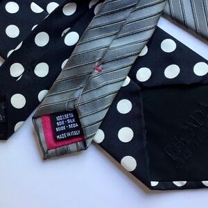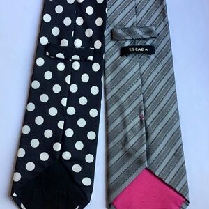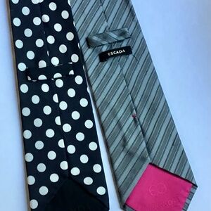 2 ESCADA 1 Black with cream polka dots, 1 gray striped silk made in Italy 🇮🇹