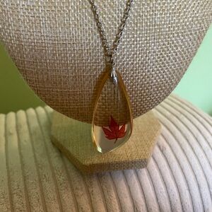 This stunning necklace features a gold bead chain with a striking red leaf pendant. Perfect for adding a touch of elegance to any outfit.