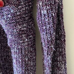 Cute slouchy knit sweater by Garage in XS/S. Good used condition. Minor signs of wear on fabric. Is a looser fit. Purple and grey knit.