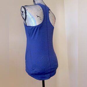 This heathered blue racerback tank by Old Navy Active features a flattering longer fit, rounded neckline, and a more fitted bodice style. Perfect for any workout, or even worn all summer with your favourite pair of shorts. The beautiful royal blue colour is the perfect jewel tone for spring and summer. This top is in perfect condition with little to no signs of wear.
