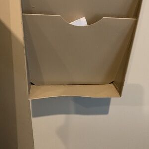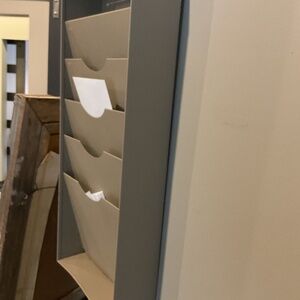 Metal organizer that hangs or sits on shelf