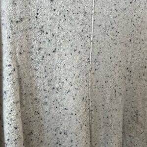 Long sleeve cream with black fleck sweater . Shorter in the front with small slit on side. Very soft and cozy.