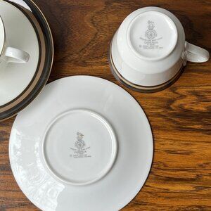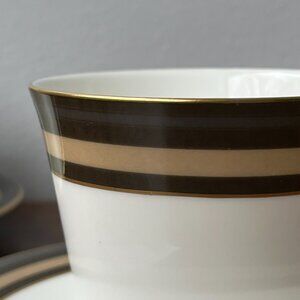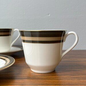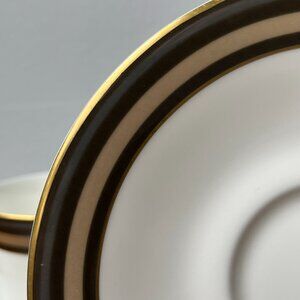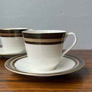 Description ☕☕ 2 vintage tea pairs (2 cups + 2 saucers), by Royal Doulton (England). The name of this series of tableware is Cadenza, discreet, but surprisingly elegant design. The emphasis is on two shades of brown, framed by thin gold lines, made on the edges of the cup and saucer.