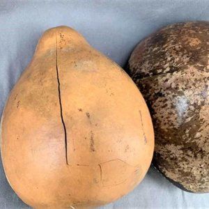 Pear shaped harp has crack on the back but still sounds beautiful 6" x 5" x 3" high