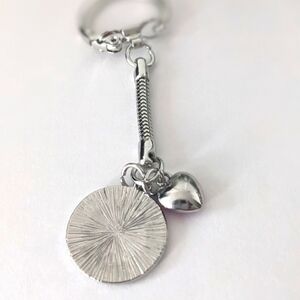 RESTOCKED my boutique Leo Rhodium Finish Keychain with a Brown Glass Heart Shape Silver Charm 💕