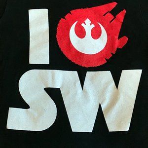 Great quality, a parody on the 'I heart NY' shirt with the Millennium Falcon as the heart.