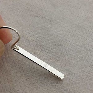Handcrafted in Quebec. The top half of the earring is smooth, followed by two dots and then lines. Measures 1.5 inches from the top of the ear wire.