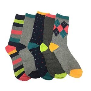 You get a 5-Pack of Men's Dress Socks in Assorted Patterns and Colours.