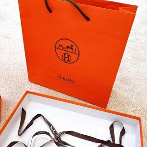 2 HERMES SHOPPING BAGS, 1 BOX, 1 RIBBON, PRICE FOR ALL