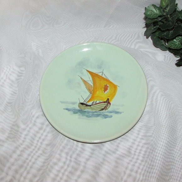 2 Hand Painted Italian Pottery Display Plates Ships Boats