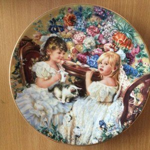 Lot of two beautiful collector plate Children playing and fishing scenes by Sandra kuck.
