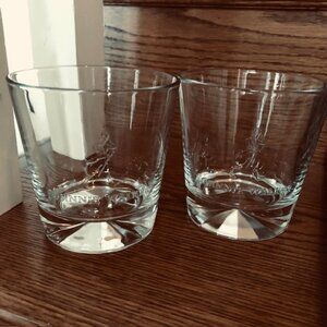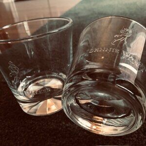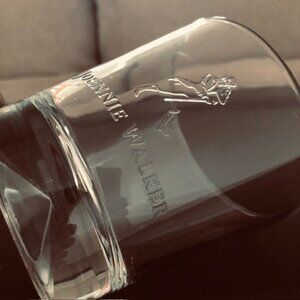 2 Johnnie Walker Whisky Rocks Glasses with Embossed details and prism bottoms