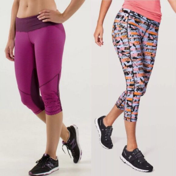 2 Lululemon Hyper Stripe Raspberry Speed Up Crop Leggings Size 6 Small Bundle