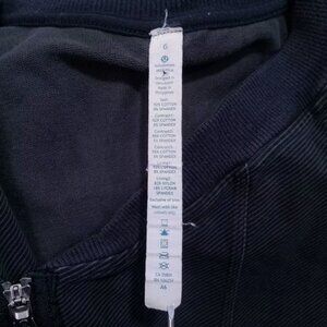 -Lululemon black gray striped jacket sweater size 6 small. 20 inch from armpit to armpit. 19.5 inch from collar to bottom at front.