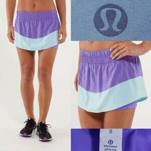 -Lululemon purple light blue yoga skort size 8 medium. 28 inch waist. 11 inch top to bottom length.