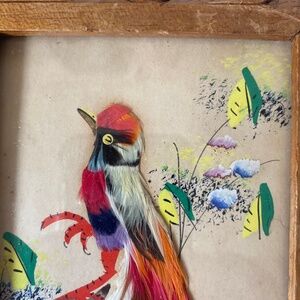 2 MEXICAN FEATHER ART Framed Bird of Paradise Pictures Vintage Scarce