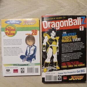 2 different manga books for sale. One is Dragon ball z 3 in 1 large manga book containing volumes 1-3, over 450 pages. The other is the Prince of Tennis volume 26 regular size book.