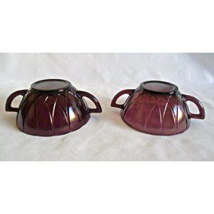 2 Newport Cream Soup Handle Bowl Amethyst Hairpin Depression Glass Purple Hazel