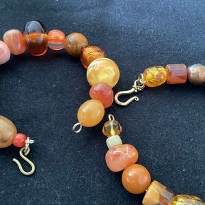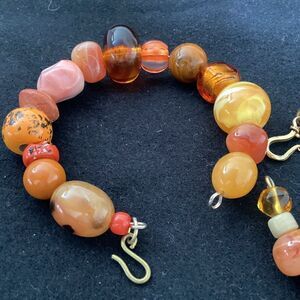 Vintage and new beads on gold tone wire with hook clasps, new, 2.25” diameter