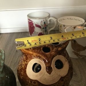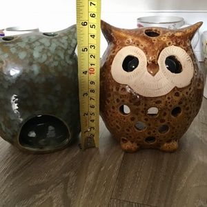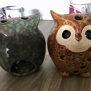 2 Owls Candle Holders Ceramic figurines Brown & Green