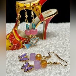 Bright colourful earrings made by me with oil drop charms and light bright colours -feel like spring? Free gift bag-new never worn