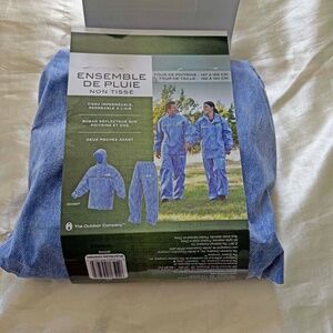 2 PCE RAIN SUIT, COLEMAN, LIGHT BLUE, UNISEX 3XL/4XL, WATERPROOF/ BREATHABLE, REFLECTIVE TAPE, TWO FRONT POCKETS, FRONT ZIP, HAS CARRY POUCH, TAGS ON, IN ORIGINAL BAG, NEW NEVER WORN