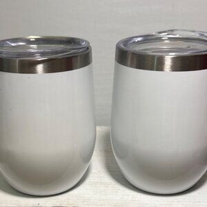 2 PJs Craft Cream Liquor Stainless Steel Insulated White Tumblers Clear Lids