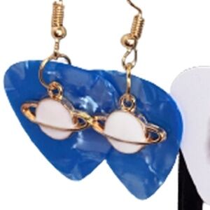 2 PR Earrings Repurposed Guitar Picks Ice Cream Cones & Planet Hand Crafted NIP