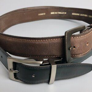 2 pack of genuine leather belts. Men's size 34. Do not appear to have much sign of use.