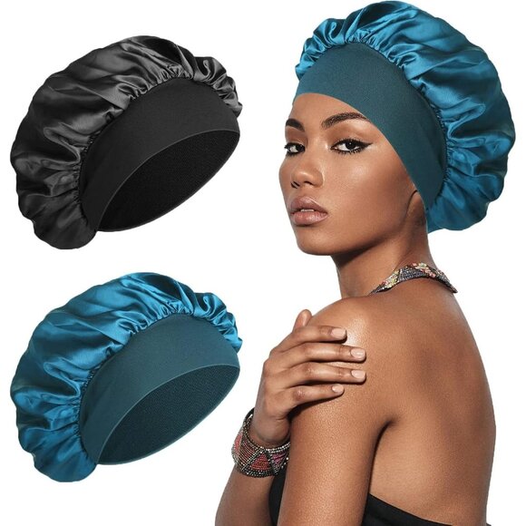 * 2 PCS Silk Bonnet - Teal & Black