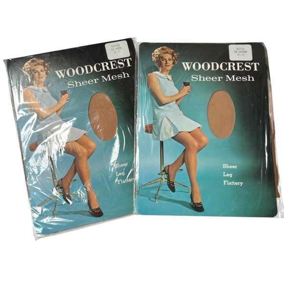 2 Pair Woodcrest Stockings Size Medium - 10 - Hosiery Blush Vintage NOS Nylons