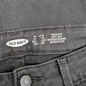 This listing is for 2 pairs of black jeans by Old Navy - both of which are "Rockstar Super Skinny" high-rise fit. Both pairs have a button and zip front, 5 pockets, and skinny fit. Both pairs also have normal wear, including tone loss/wear around the knees and some in the crotch. The pants are comfortable for walking, crouching, lifting, etc. Despite the wear, there is still life left in these pants, I just found a brand that fits me better. The pictures should be in order with the pair on the left in pic 1 being broken down first.