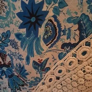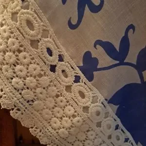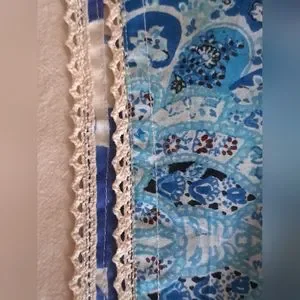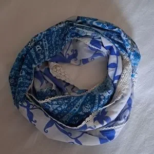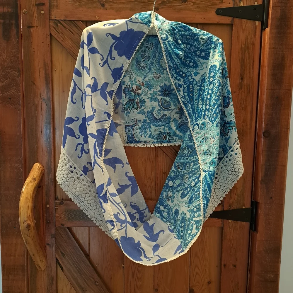 Pretty "handmade" 100% cotton infinity scarf with cream coloured lace edging all around.
