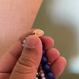 This stunning necklace and natural stone bracelet set features elegant blue and white beads, perfect for adding a touch of sophistication to any outfit. The intricate design is complemented by a matching bracelet, making it a versatile addition to your jewelry collection. Bracelet is unbranded.