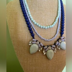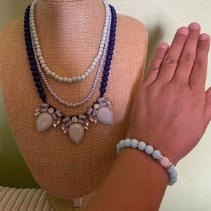 2 Piece Charming Charlie Blue and White Beaded Necklace and matching bracelet