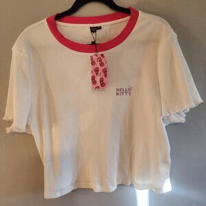 Stylish hot pink midi skirt with a white and pink hello kitty crop top. Skirt is a size 2x, top is 4x but is juniors and runs small. Stand out outfit! Never worn. Smoke free, pet friendly home.