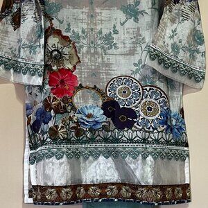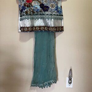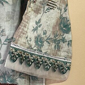 2 Piece 1. Shirt -- Lawn Embroidered Shoulder: 14.5" Bust: 20" Length: 36" 2. Dupatta - Chiffon Fully Embroidered