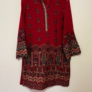 2 Piece Silk Cotton Net Embroidered Formal Suit - Indian/ Pakistani