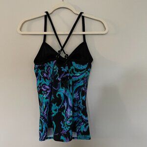 2 Piece Tankini Swim suit with Swim Skirt Purple Green Black Size M