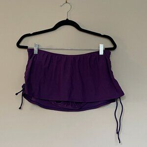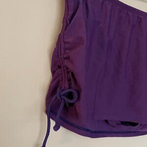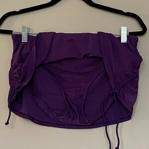 Swim skirt is plain purple with side drawstrings so you can leave longer or scrunch it up