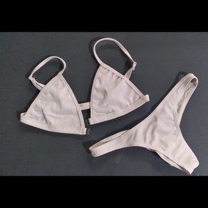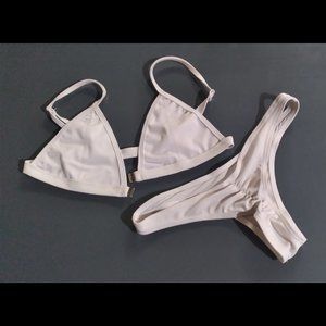 White 2 piece bikini with Front Metal Clasp Closure and cheeky bottom set