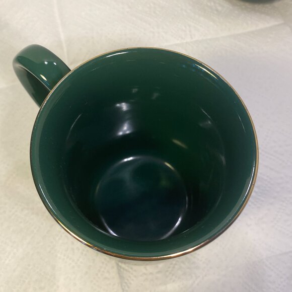 2 Porcelain Mallard Duck Coffee Mugs Otagiri Japan Forest Green and Gold