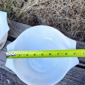 Pyrex brown 'floral vine' casserole dish set - one medium and one small.